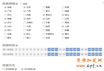 1、計劃創建和設置:高級設置,根據店鋪實際情況設置投放地域和時間段。