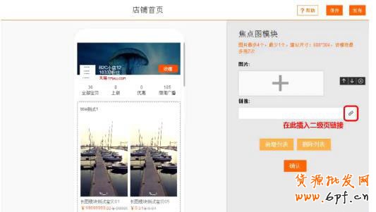 在店鋪首頁-圖文類模塊中,除了“文本模塊”、“輔助線”其余留個模塊均可添加活動頁鏈接。而后在首頁中展示。手動粘貼活動頁鏈接或使用鏈接小工具均可。