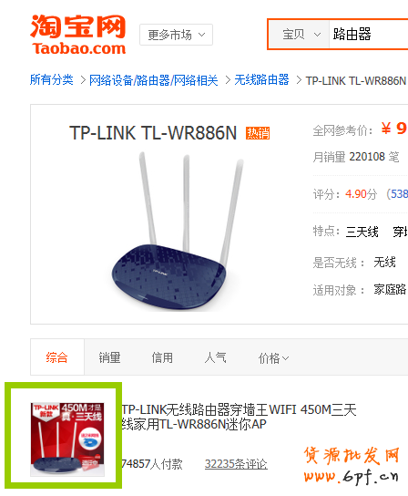 確定主圖位置:利用淘寶搜索該類目的關鍵詞,點擊后自動跳轉到寶貝的哪個窗口,則該窗口就是寶貝主圖的展示位置;如:上淘寶搜索路由器,點擊后跳轉到第2張,則主圖在第2張。
