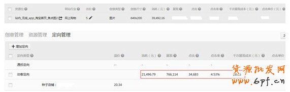 2、資源位的選擇:這里一個單元只投放站內無線app焦點圖2一個展位,底價設置為5元,降低通投,按現在的定向溢價來出價,比參考出價高一倍,但點擊率較高,并且沒有通投的流量。