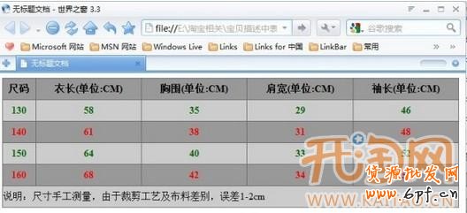 這種形式可操作性不強,因為一旦我們的寶貝尺碼數據發生變化,我們只能重新制作表格,生成圖片,上傳圖片,最后編輯修改。如果店鋪當中的寶貝數量多的話,那這種表格的制作任務就會令人望而生畏。這也是為什么有那么多的小賣家寧愿選擇文字列舉形式的一個非常重要的原因,畢竟店小,沒有那么多的人手來處理這種事情,只有大賣家才會富余的人手來進行這種表格的處理。