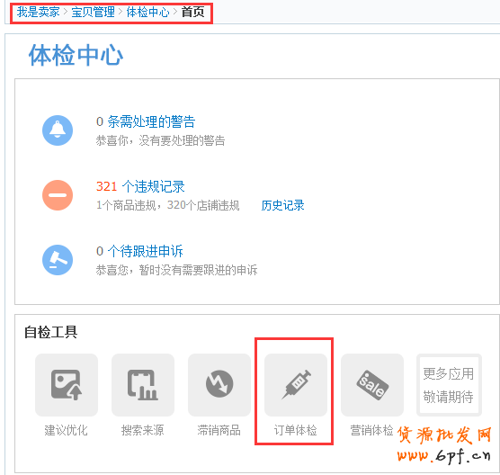 登錄淘寶 - 進入賣家中心 - 寶貝管理 - 體檢中心 - 訂單體檢