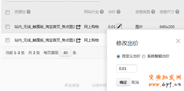 1、首先當然是將資源位的通投出價修改為0.01元,這在22號鉆展后臺發布公告之后小編就迫不及待了,所以時間一到,小編立馬修改成0.01元的低價。