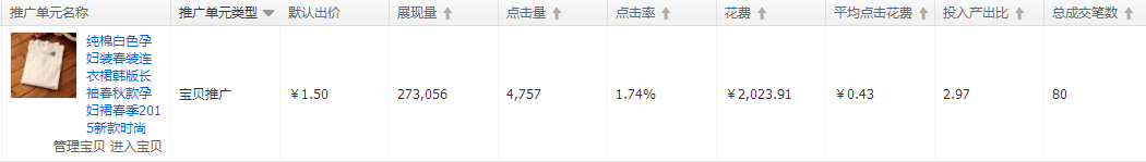 下面為該款寶貝為賬戶中多次測試后選定的第二款寶貝:
