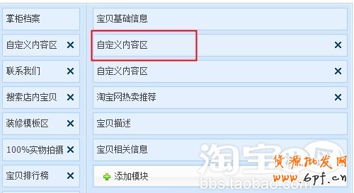第三步:在寶貝詳情頁添加自定義模板,如下圖,先點擊下面的添加模板,然后把這個自定義模板用鼠標按住,拖放到第二位,再點擊下面的【保存】按鈕,這時頁面會自動刷新。