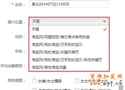 2、定向推廣:有哪些資源位置是定向推廣的寶貝可以選擇上的?