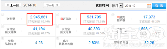 這是當時店鋪一個月的經營概況,觀察發現,店鋪的無線端流量在當時很多賣家只有百分之二三十的時候已經達到了50%多,成交占比也有45%,在當時手機店鋪只是草草裝修的情況下已經很不錯了。