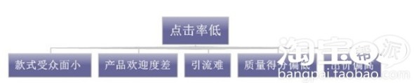 假如一款寶貝,款式是符合爆款潛質的,基礎點擊率也是較好的,但在直通車操作時,由于出價太低,排位很后面,同時創意比較差,關鍵詞又太寬泛不精準,價格也偏高,最終造成點擊率很低。這就會干擾你分析,哪個因素是影響點擊率的核心問題,可能會誤判為款式問題,最終放棄推廣。