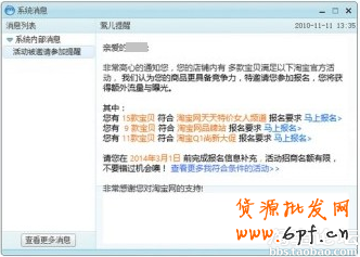 淘寶主動邀請賣家的旺旺/千牛系統消息如下: