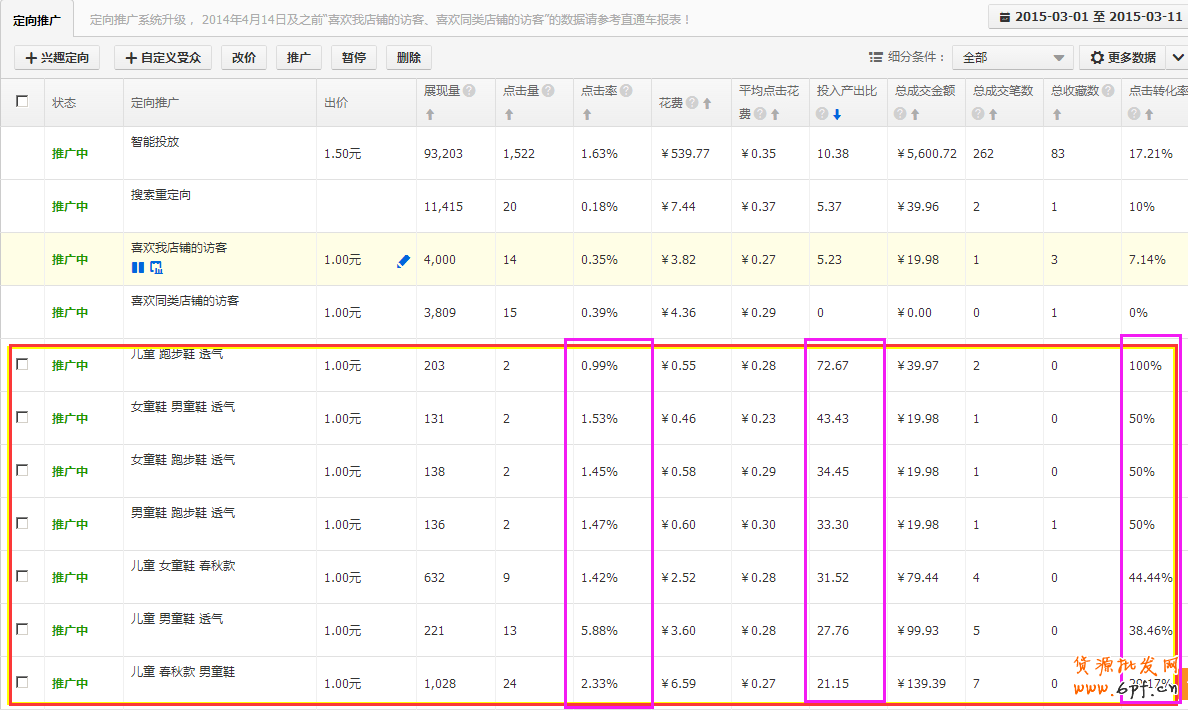 直通車定向的選款尤為重要,如果選錯了款式這塊有可能會一路下滑去,所以需要先測試,在優化隱性的質量分,興趣點都需要培養起來,只有一路關注,以及長期將定向管理起來做下去才能成功。