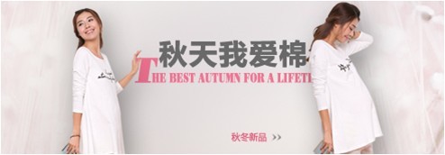 2、圖2 表達的信息更簡單,從文案上看,一句話突出了“秋季”、“棉”的信息,恰好能抓住孕婦的需求,下方的小箭頭更能在潛意識的引導買家點擊。從排版上看,左右兩個模特的排版也是服飾類產品常用的排版,而且兩張圖從左到右,暗示買家衣服適合不同懷孕階段穿,增加購買欲望。