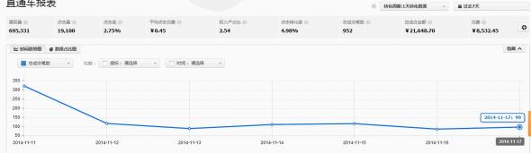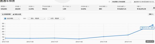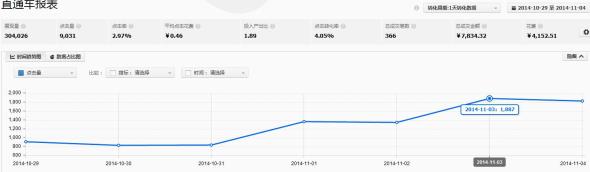 雙11當天全店成交用戶數1336筆,直通車成交324筆。約占到了全店的1/3。雖然對于這個結果我還不是很滿意,但是至少,這個店鋪每天直通車可以帶來的單子已經達成了掌柜的期望,而且還有點賣超。過了雙十一之后這幾天,一直是出于“后雙十一”時代,這個時候買家的購買力普遍下降,已經沒有那么大的購買需求,而我們的店鋪依然是高歌猛進,成交筆數每天約在100筆左右。