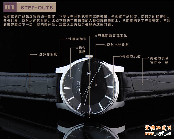 1、比如下圖的手表拍照的人物倒影在表面上。從而影響到了產品美觀。兩邊的表帶顏色不一致,影響整體性。觀察之后再動手去解決這些問題。