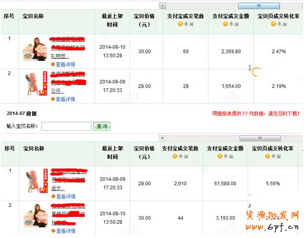 通過以上2個月的數據對比不難看出,這款寶貝的成交情況,6月份的成交金額是2369元,7月份成交金額是61589元,翻了26倍,此時爆款已經形成。
