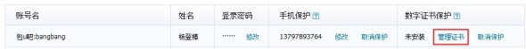 (2)子證書:主賬號先開通證書保護(需先綁定手機),開啟了子證書的電腦不需要驗證手機