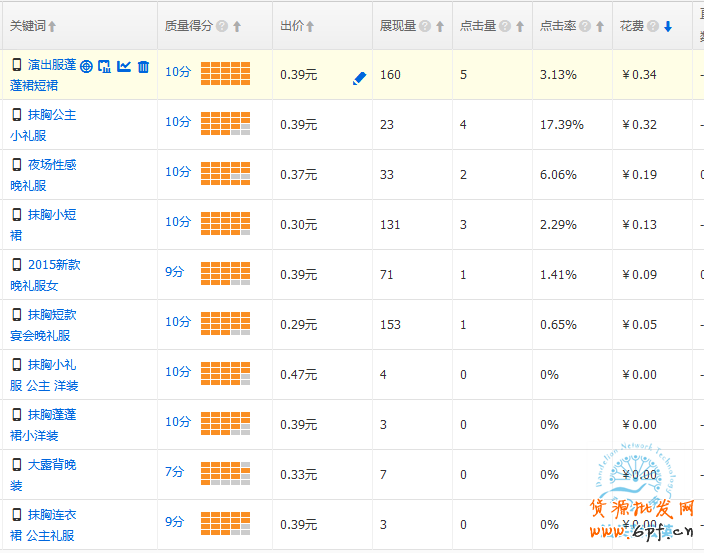 添加該類競爭小,有展現的詞,流量雖然不會很多,但是不會因為款式的差導致點擊率低影響賬戶的整體基礎分,并且此時需測試市場反映情況,考慮是否更換。起步期做到不影響賬戶的前提做好款式的測試,此步驟我們重點參考的數據指標為:競爭指數低、展現指數低、點擊率大。