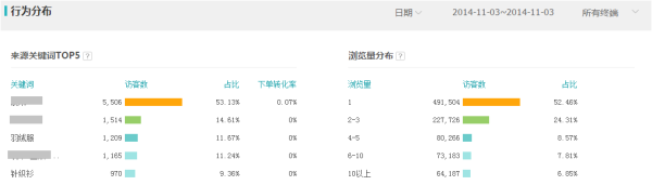 通過選擇日期、終端,查看對應統計周期內,各類終端下,訪客的來訪關鍵詞判斷訪客來訪需求,訪客的瀏覽量分布判斷訪客的興趣程度。