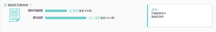 頁面高度涉及到打開寶貝頁需要加載的時長,所以,會建議說“圖片不要超過16張”,“不要超過3屏”等;但是每個類目情況不一樣,店鋪自身情況不一樣;用生意參謀,我們就可以看到自身店鋪實際情況。并且,生意參謀工具還會給有結論與建議,讓我們很容易看懂,這是其他工具所不具備的。