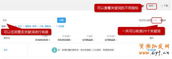 可以選擇時間周期查看,店外比如在http://taobao.com首頁搜索框搜索關鍵詞后,點擊商品進入本店內的搜索關鍵詞,可以查看這些關鍵詞給本店帶來的流量以及后續的下單轉化效果,同時可以比較這些關鍵詞在全網范圍內的搜索熱度等數據,以判斷這個關鍵詞是否為熱詞、競爭是否過熱等,從而決策是否需要調整直通車投入等。
