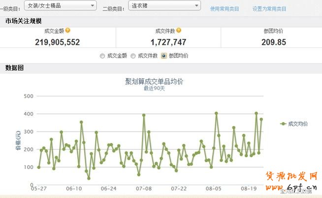 要清楚了解主打各葉子類目的曲線圖,結合每月聚劃算類目規劃排期和坑位數量,利用淘指數來查看近兩年的葉子類目的發展趨勢,如下圖葉子類目:連衣裙,了解好商品的銷量需求趨勢,為選款做好準備。