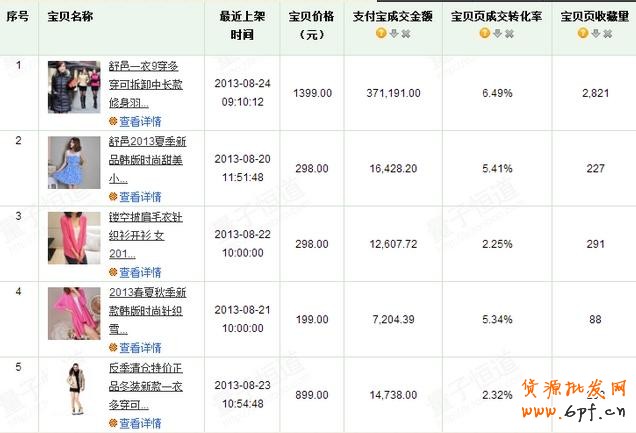 前期測試主圖,同時還要結合收藏數據,基本上就能判斷出哪些款后期可能表現會比較好,比如下圖,綜合數據發現,1號寶貝的轉化率高達6%,收藏量高達2800,通過其他數據進行綜合對比,最終確定1號為聚劃算款式。