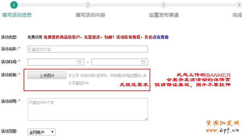 【第3步】在設置發布渠道中,勾選自定義渠道-女包/男包頻道,上傳符合視覺規范的活動封面banner