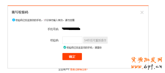 填寫的手機號碼收到校驗碼輸入到選框中,然后確定。