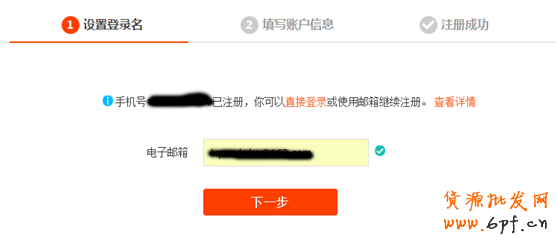 我們進入淘寶網看見左上角的“免費注冊”,點擊進去填寫手機號碼和驗證碼,最后點擊下一步。