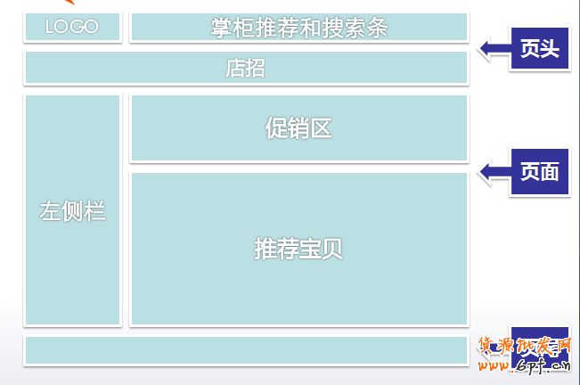 頁頭;左側欄;促銷區;推薦寶貝;頁尾