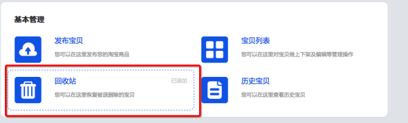 被誤刪除的寶貝,現將“回收站”做單獨的功能組件,可以在寶貝管理首頁找到。