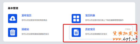 現將“歷史寶貝”做成單獨的功能組件,可以在寶貝管理首頁中找到。