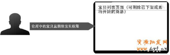 原先具有出售中的寶貝或者倉庫里的寶貝頁面權限的子帳號,可以瀏覽寶貝列表頁面,即寶貝列表的查看權限為原先出售中和倉庫里兩個權限的合并權限,但不代表可以修改寶貝(如上下架、改標題等)。原先具有上下架、改庫存權限的子帳號,在新版的寶貝列表頁面里可以進行上架、下架和修改庫存的操作;若原先只具有出售中的寶貝或倉庫里的寶貝頁面權限,但不具有上下架、改庫存的權限,則在新版寶貝列表頁面里只能查看寶貝數據,無法進行上架、下架和修改庫存的操作;若原先只具有出售中的寶貝或者倉庫里的寶貝頁面權限,但不具有刪除寶貝的權限,則在新版寶貝頁面中不能刪除寶貝;若原先具有刪除寶貝的權限,則在新版寶貝列表中可以刪除寶貝。對于其他功能的權限,如回收站、歷史庫等和原有的保持一致,即擁有倉庫里的頁面權限時才能進入回收站和歷史庫寶貝頁面。新版權限對應如下圖所示: