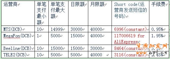 除此之外,為了最大讓利俄羅斯消費者,速賣通推出的手機話費余額支付費率也相當劃算。據介紹,使用Groupon的MTS會向用戶收取6%的費率,Megafon向用戶收取6%,Beeline收取8%,tele2收取7.4%。而速賣通推出的手機支付服務,費率最低僅為0.95%。