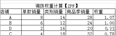 舉例:A店A款賣10個,總銷50個,B店A款賣6個,總銷20個,A款對哪家店更重要?