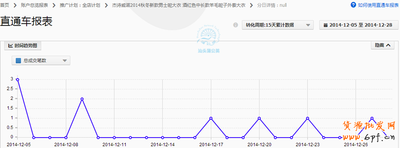 從保持定向的出價力度我們來看,12.05-12.28日均流量對比11.28-12.04還要低許多,但從成交筆數上看,成交的頻率有明顯的上升,到這里我們不難看出,這款寶貝的定向通投數據還是比較好的。(如下圖回顧)