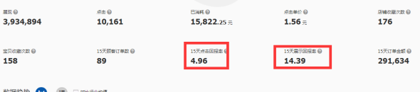 上圖為定向融合之前7天的鉆展投放整體數據,花費15822成交89筆,點擊單價1.56,點擊回報率4.96,展示回報率14.39。