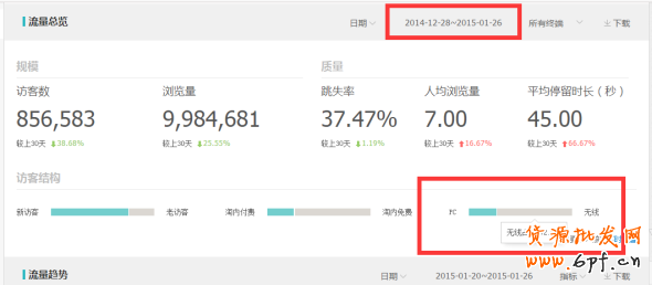 但在2015年的投放中,我們可以很明顯的感覺到,店鋪的無線端流量占比加大,甚至有些店鋪的無線流量占比可以達到百分之70以上,店鋪銷售額無線的占比也很高,這個時候我就把鉆展投放的主要消耗轉移到了無線上來,開始研究如何才能讓無線的鉆展數據飛起來··(以下為截圖的兩個店鋪無線占比情況)