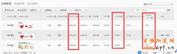 在無線端的投放展位上,我向大家建議以下兩個尺寸的展位,簡稱:舊版無線(592*296)和新版無線(640*200)。舊版無線點擊花費低,但是流量小,大預算容易消耗不完。新版無線流量大,點擊花費低,能夠滿足大預算投放的需求。其他的陌陌等無線資源投放的效果主要為點擊花費低,但是投產不是很樂觀哦