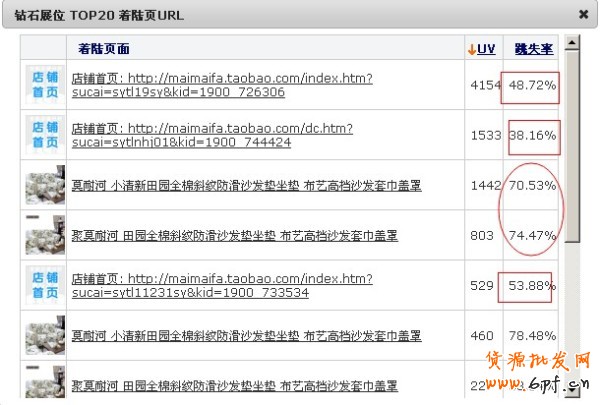 筆者在選擇落地頁初始,像大部分操作人員一樣,選擇的單品的寶貝,但是如上圖所示,數據反饋單品的跳失率基本都在60%以上,因此重新對單個產品和整個店鋪進行分析,考慮到店鋪內前幾個寶貝銷量差別不大,并且沙發墊的風格多樣,因此很難確定某一款就一定受消費者喜歡,因此調換首頁為落地頁,并且保證創意圖片上的寶貝全都能夠集中在首頁的前三屏內,這樣既給消費者提供了更多的選擇,同時還提高了訪問深度,降低了跳失率,自然而然的也就提高了鉆展轉化。
