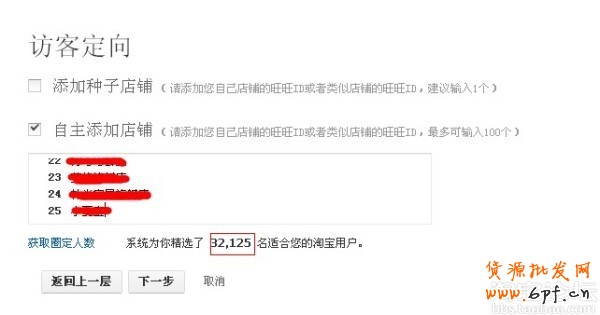 在鉆展投放初期,訪客定向圈定的人數為6萬多,對于淘寶通欄這個位置來說,圈定人數并不少,為了進一步精準人群,筆者在之前店鋪的基礎上進行新一輪的篩選,主要是參考產品價格和風格兩個維度,過濾掉了一些相對不太精準的店鋪,圈定人數縮減到3萬多人,雖然人數減少,但是精準度提高了,轉化也相應提升了上去。