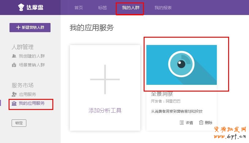 進入達摩盤——“我的人群”——“我的應用服務”進入全景洞察。