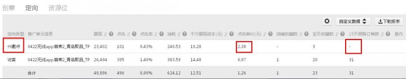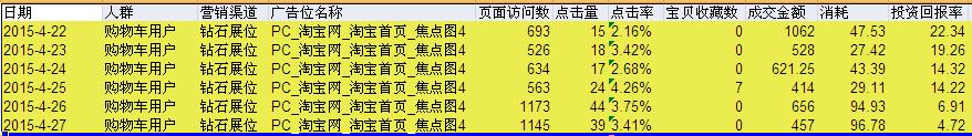 我們選擇淘寶首焦2高溢價投放訪客用戶,投放數據效果如下: