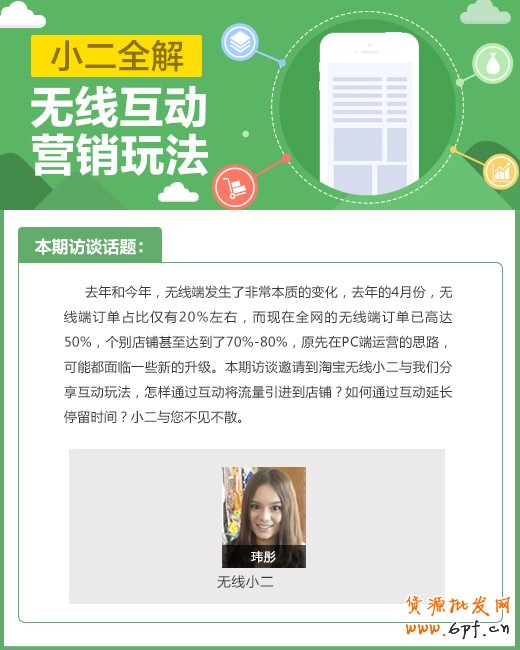 本期訪談我們邀請淘寶無線商家小二主要跟大家介紹一下無線端的互動玩法,也就是說如何通過互動將買家吸引到店鋪,讓店鋪獲得更多的流量,而進店的流量,通過互動延長停留時間。