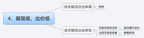 先進行確認,關鍵詞跟寶貝是否相關(主要看屬性和類目)。如果相關度比較好的,可以通過優化寶貝創意圖片來提高點擊率;如果相關性較差的,需要這個關鍵詞引流的可以先暫時保留,關注一段時間看看;如果不相關的話,就要考慮更換關鍵詞了。