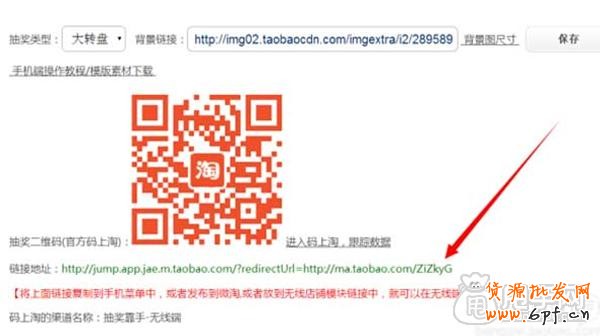 1.前面這一步跟微淘設置抽獎活動是一樣的,打開左側的設置手機抽獎,選擇一種游戲類型,,這里的游戲類型可以與PC端不同, 也可以相同,手機端目前3個游戲模式,大富翁,轉盤,拼圖,選擇其中一種,最好點擊保存,這時候我們會看到下面有一個連接。
