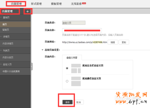 圖6的界面中,你可以增加新的頁面,在這新增頁面里,你能夠無限度的添加“自定義內容區”模塊,也就是說你可以盡情的舒展你的裝修天賦,海闊憑魚躍,天高任鳥飛。