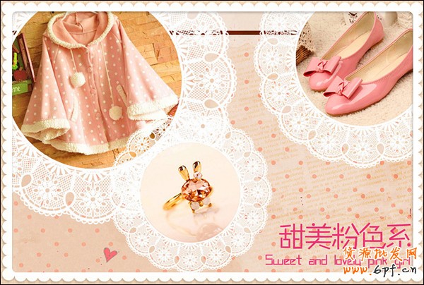 三、為了讓圖片的整體更具有特色,可加上一些飾品為圖片增添色彩,我在美圖秀秀上方找到飾品——其實飾品,把蕾絲花邊添加到每張素材上。