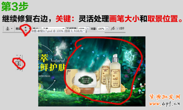 繼續修復右邊,關鍵:靈活處理畫筆大小和取景位置