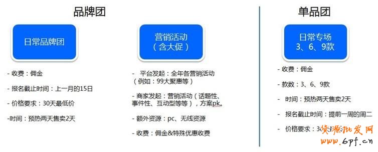 - 由平臺規劃的不同級別營銷活動:統一給出招商公共和時間節點,商家報名后進行入圍篩選。