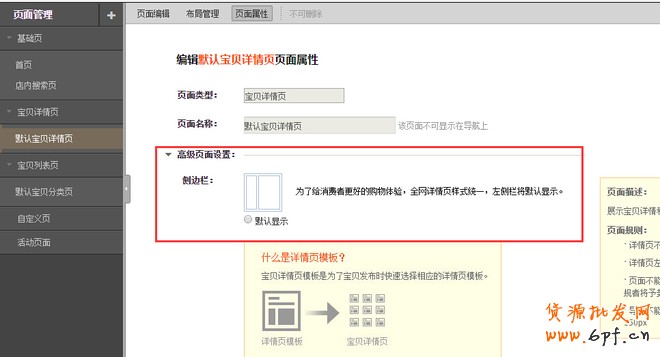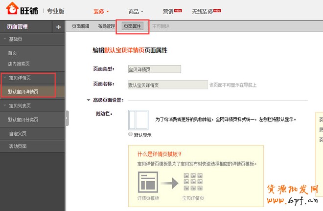 接著在店鋪裝修里找到默認寶貝詳情頁